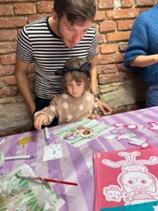 Na děti čekala hned tři kreativní stanoviště. Na každém z nich se všechny Gábi milovnice doslova vyřádily. Vyškrabávaly obrázky, vybarvovaly Gábi kouzelný domek a dokonce malovaly na opravdová plátna různých tvarů. Chybět nemohla ani spousta třpytek a samolepek. Navíc se každý dětský účastník workshopu mohl zapojit do soutěže o trička a kočičí čelenky. Ani o občerstvení nebyla nouze. K zakoupení byly po celou dobu workshopu citrónové makronky, oříškovo-čokoládové cookiesky, mramorovaná bábovka a muffiny s bílou čokoládou a švestkami. To vše z dílny Peciválečka. Dospěláci si mohlI pochutnat na kávě nebo skleničce prosecca.