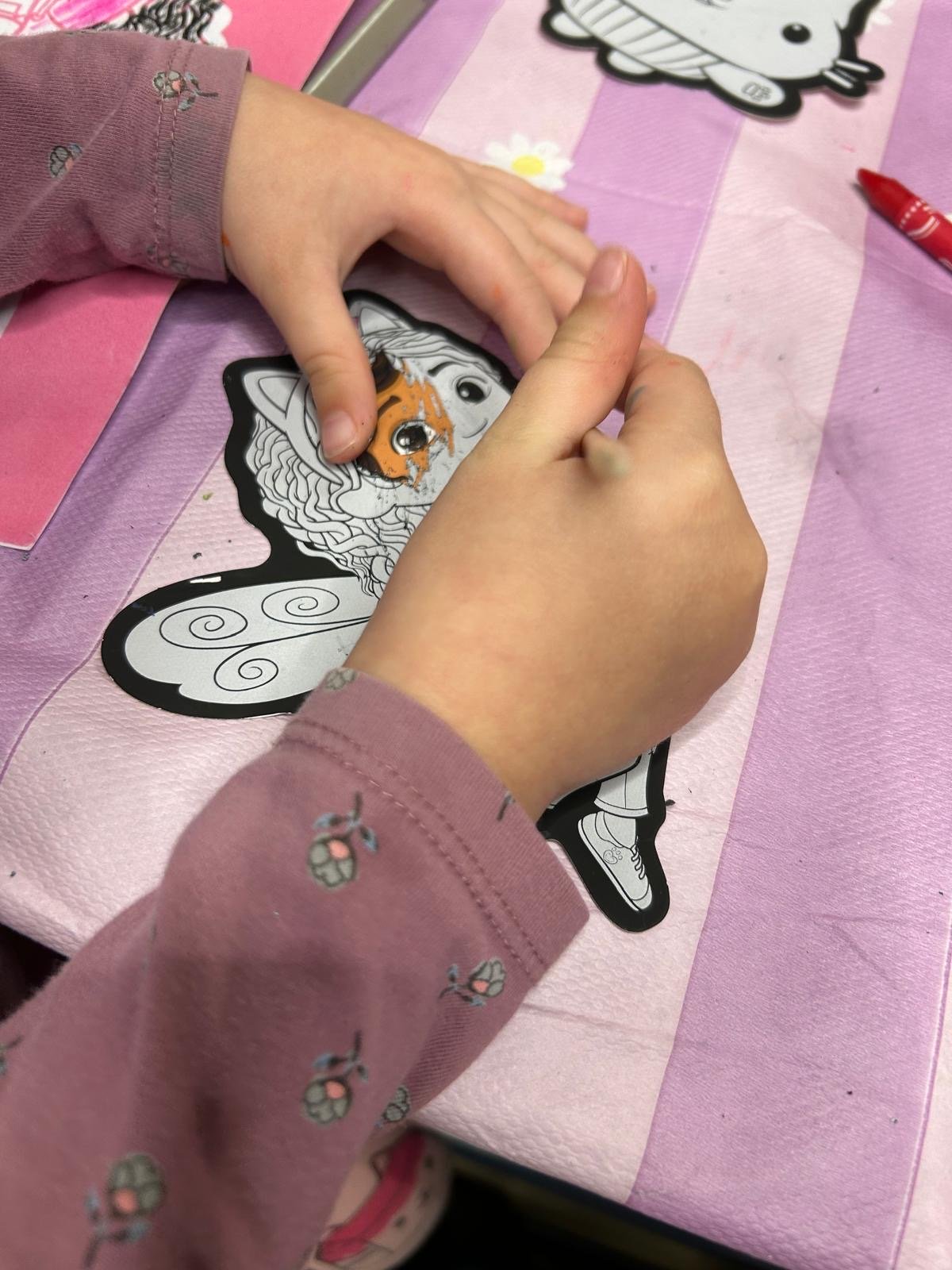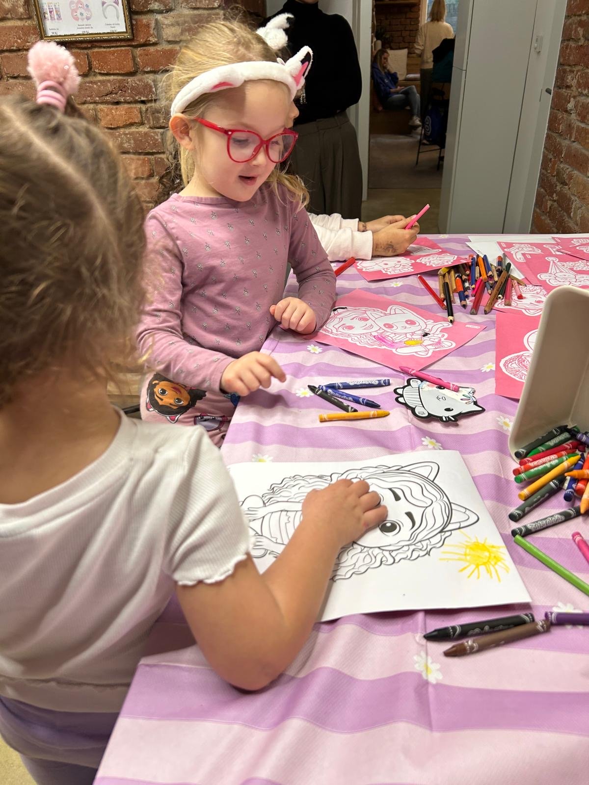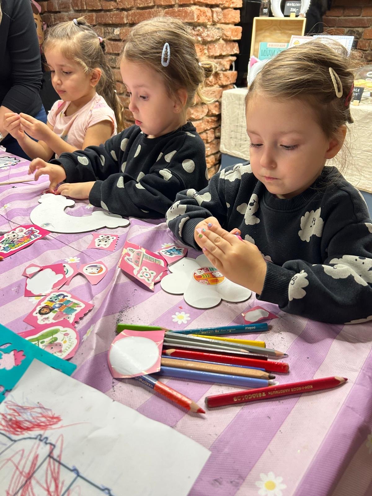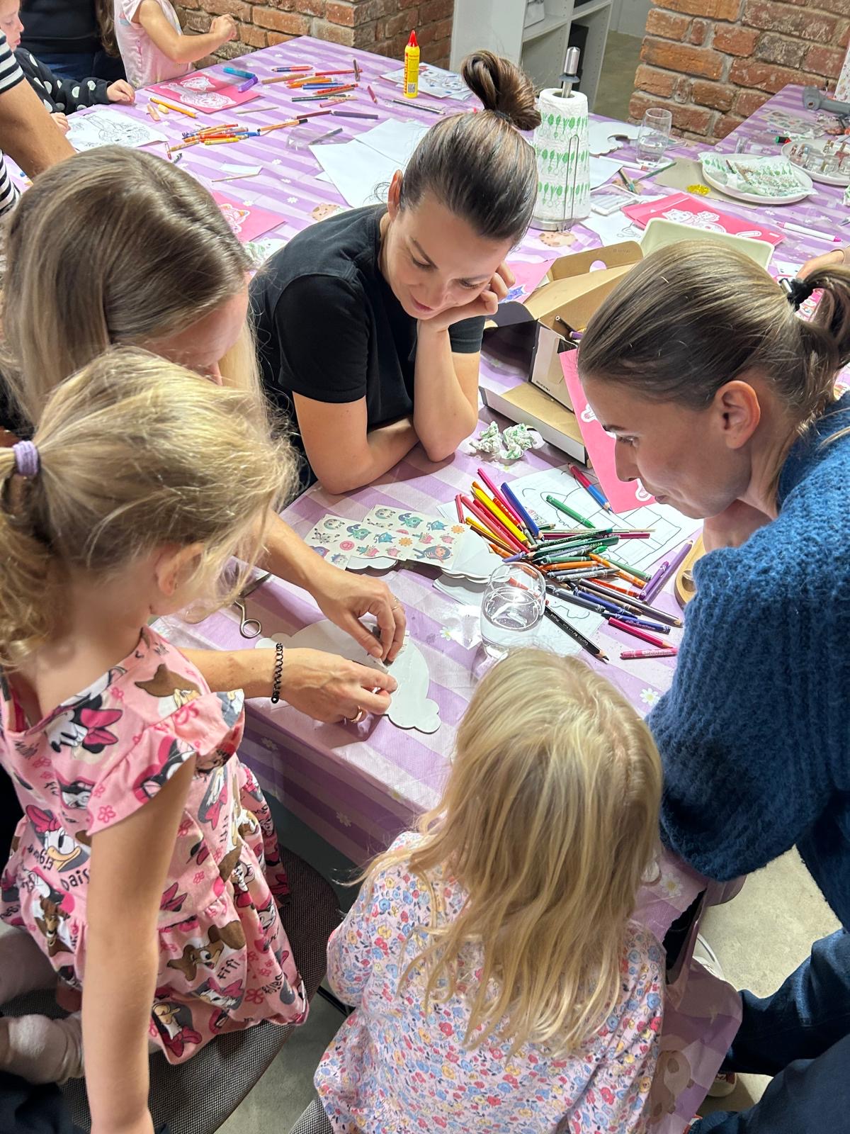 Na děti čekala hned tři kreativní stanoviště. Na každém z nich se všechny Gábi milovnice doslova vyřádily. Vyškrabávaly obrázky, vybarvovaly Gábi kouzelný domek a dokonce malovaly na opravdová plátna různých tvarů. Chybět nemohla ani spousta třpytek a samolepek. Navíc se každý dětský účastník workshopu mohl zapojit do soutěže o trička a kočičí čelenky. Ani o občerstvení nebyla nouze. K zakoupení byly po celou dobu workshopu citrónové makronky, oříškovo-čokoládové cookiesky, mramorovaná bábovka a muffiny s bílou čokoládou a švestkami. To vše z dílny Peciválečka. Dospěláci si mohlI pochutnat na kávě nebo skleničce prosecca.