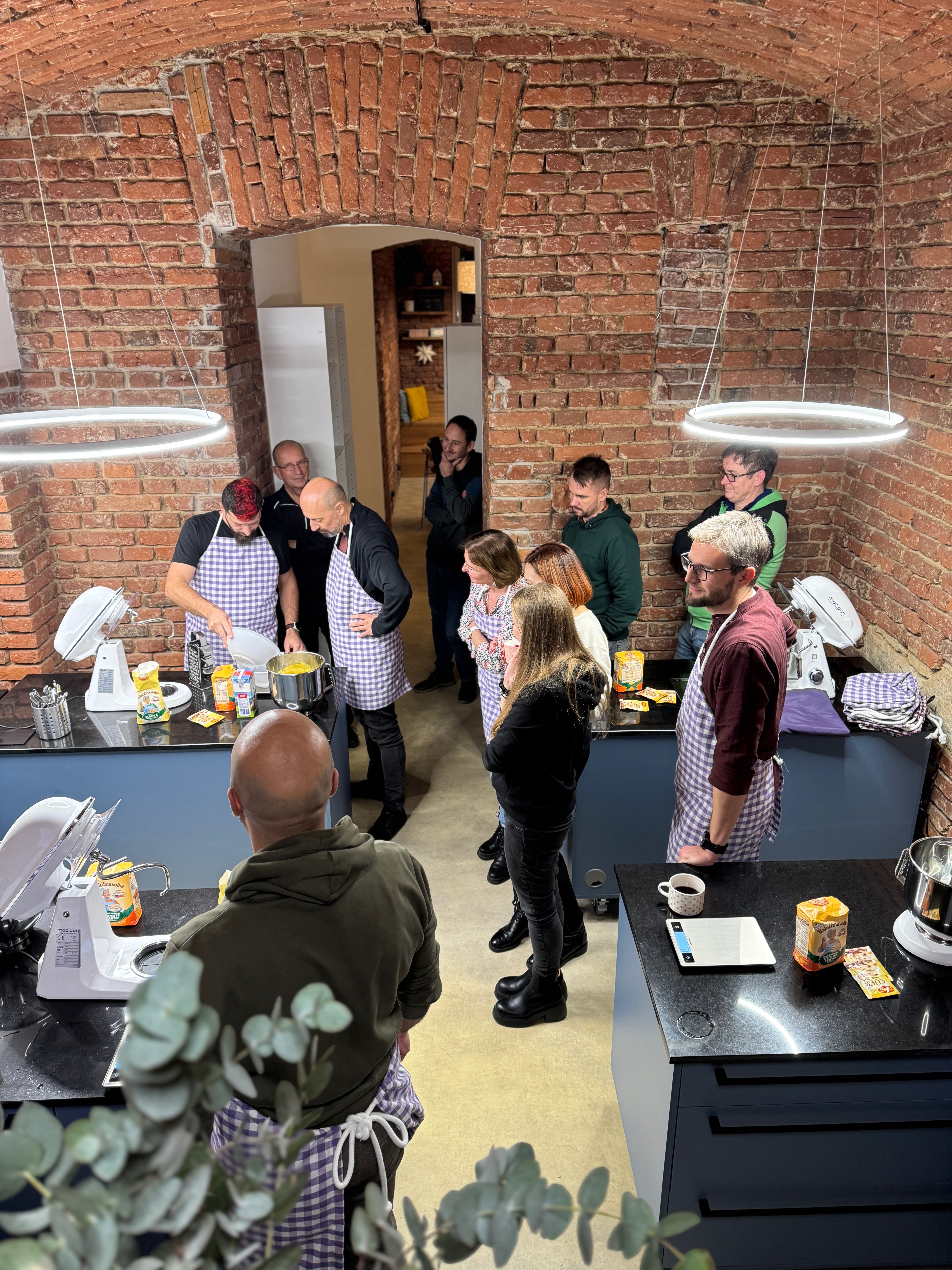 Mimo nabízené občerstvení, které vám na míru připraví naše studio, si se svými kolegy a kolegyněmi můžete pod vedením lektora společně uvařit vlastní hlavní jídlo.
